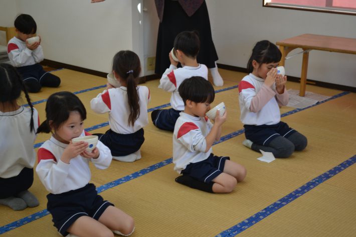 【月組】お茶教室 2026年01月13日 園ブログ 令和8年になり、初めてのお茶教室でした! 久しぶりでしたが、背中をピン!とまっすぐにして、お話を聞くことができました(*´▽`*) お茶菓子を頂くのも、お茶を点てるのも、とても上手な月組さんでしたよ♡ 3月にある親子お茶会が楽しみですね!! 続きを読む 避難訓練! 2026年01月9日 園ブログ 今日は三学期はじめの避難訓練がありました! 避難するときは、放送をよく聞き、 口をハンカチや手で覆ったりして 指定された避難場所へ避難ができていましたよ! 避難場所についたら、クラスごとに並んで、 みんなが避難できているか確認をし、 火災についてのお話を聞いたり 先生たちの消火訓練をしました。 続きを読む 三学期始業式(^^) 2026年01月8日 園ブログ 明けましておめでとうございます! いよいよ今日は始業式! 三学期のスタートです(*^^*) 久しぶりに友達や先生たちに会い、嬉しそうな子ども達でした! 始業式では、元気に新年のあいさつをしたり、 三学期も頑張ろうー!と気合十分でした(^^) 三学期は音楽リ… 続きを読む 職員年始参り♪ 2026年01月5日 園ブログ 明けましておめでとうございます! 本年もよろしくお願い致します(^^) 皆さん、冬休みはいかがお過ごしですか~? 寒い日が続いていますので、体調には十分 気をつけてくださいね! ********************** 今日(1/5)は、光生幼稚園の先生と一緒に光圓寺様へ 職員年始参りに行かせて… 続きを読む 音楽もがんばってるよ♪ 2025年12月26日 園ブログ 今日は、花組さんの音楽の様子をご紹介! 毎日元気いっぱいの子ども達♡♡ 園では季節のうたなどを楽しくうたったり 鍵盤ハーモニカ(メロディオン)も頑張っています! また、子ども達のリクエスト曲をドレミ音階で 歌ったり、踊りながらうたったりしていますよ~(^^) 音楽会に向けて、楽しく練習してい… 続きを読む « 最初へ‹ 前へ678910次へ ›最後へ »
